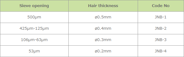 Net: For 125µm or more * Hair nylon ø0.4mm / ø0.5mm