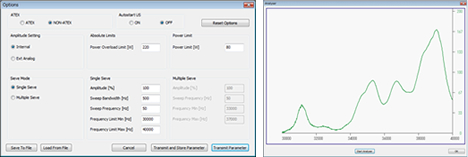 Using dedicated analysis software, the frequency range (30 kHz to 38 kHz) and the number of reciprocations (sweep frequency) up to 100 Hz can be adjusted in 1 Hz units. In addition, there are functions such as maximum output limit function, frequency analysis function, frequency setting when multiple converters are connected, and condition data storage management.