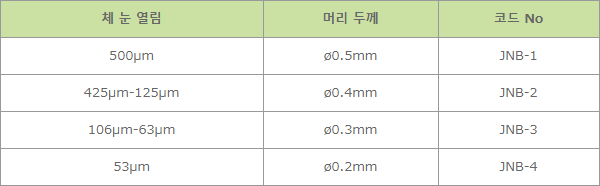 규격 중 6.1.1 (또는 6.2.1) 장치 및기구 - (5) 막힘 제거 브러쉬 체 그물 표면을 손상하지 않도록 눈 열림에 따라 적당한 경도 브러쉬를 사용한다. 라고 규정되어 있습니다.