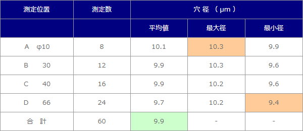 例) 穴径φ10μm