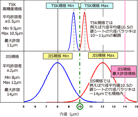 ・シート内全域での穴径バラツキ ±0.5μm