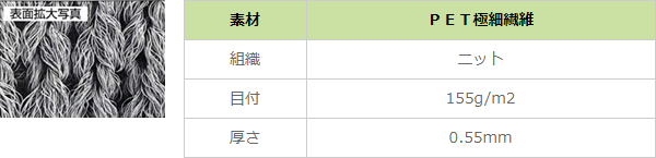 超極細繊維を使用・粘性が低い汚れを拭取る際に高い拭取り性能を発揮します。
